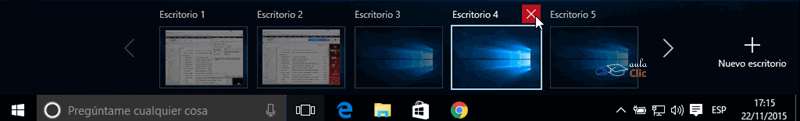 Otra opción nueva en Windows 10 es el botón Vista de tareas. Se encuentra en la barra de tareas, junto a la caja de búsqueda.