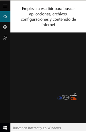 Más adelante volveremos a este tema, ya que la caja de búsqueda es el lugar donde podremos configurar y usar Cortana, un asistente de voz de Windows 10 muy similar a Siri, usado en los teléfonos iPhone, por lo que el tema de búsquedas será tratado con mayor extensión en la unidad 6.
