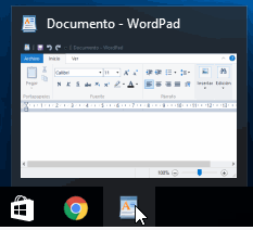 ¿Qué pasa si minimizamos todas las ventanas del escritorio pulsando las teclas Windows+D? Entonces, la única manera que tenemos para restaurar la ventana de WordPad es pulsar sobre su icono en la ventana de tareas. Incluso, antes de pulsar el icono, basta con ubicar el cursor sobre él, para que Windows presente una vista en miniatura de la ventana del programa.