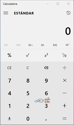 Por defecto se muestra la calculadora estándar con las funciones básicas: sumar, restar, multiplicar, dividir, etc. Si cambiamos a otra calculadora, la próxima vez que iniciemos la aplicación se abrirá nuestra última elección. La calculador estándar tiene la siguiente apariencia.