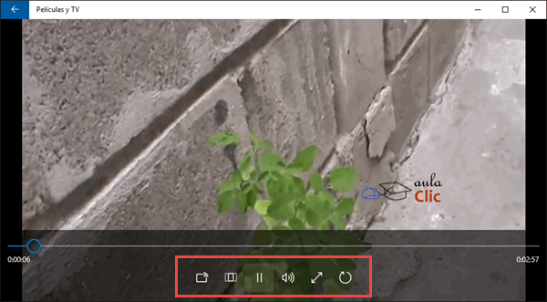 Cuando seleccionamos un video de la sección de contenido, éste se reproduce en el total de la ventana de la aplicación. Cuando pasamos el cursor sobre el video, aparece su barra de controles.