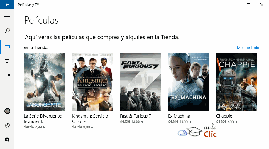 Películas y TV, de modo similar a la aplicación Groove Música, está orientado a la reproducción sencilla de videos y a la adquisición de contenidos en línea.
