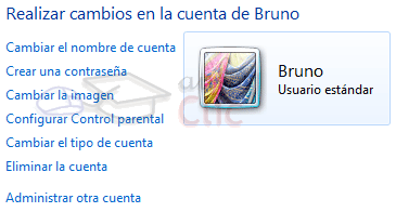 Podremos Crear una nueva cuenta desde el enlace, aunque lo que vamos a hacer es seleccionar uno de los cuatro usuarios del equipo para administrarlo. De este modo veremos una ventana con prácticamente las mismas opciones que las que teníamos en nuestra cuenta, con la diferencia de que podremos: