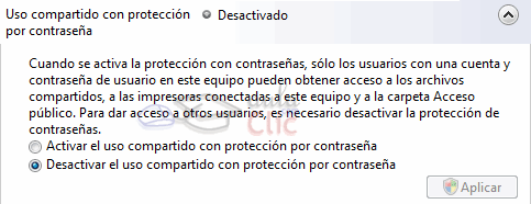 Si esta opción está activada, sólo podrán acceder a nuestras carpetas compartidas y recursos los usuarios que tengan cuenta en este equipo (conozcan un usuario y contraseña) pero cuya contraseña no esté en blanco. Esto no quiere decir que debamos dar nuestro nombre de usuario y contraseña a todos los usuarios que queramos que accedan, pero sí deberemos crear un usuario para ellos y darles los datos, o que ellos creen un usuario con su mismo nombre y contraseña en nuestro equipo. Si la desactivamos, cualquier usuario de la red podrá acceder a nuestras carpetas y recursos disponibles. |