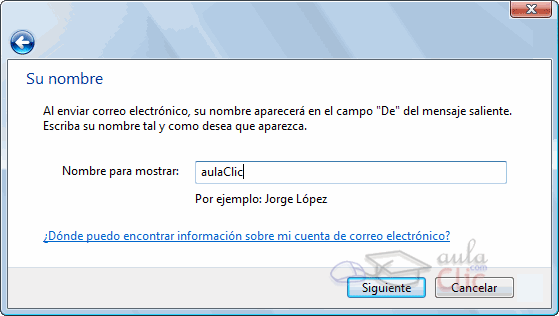 En la siguiente ventana, lo único que debemos introducir es el nombre que se mostrará al enviar el correo.