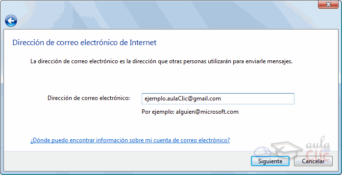 En la siguiente ventana, introducimos nuestra dirección de correo completa: