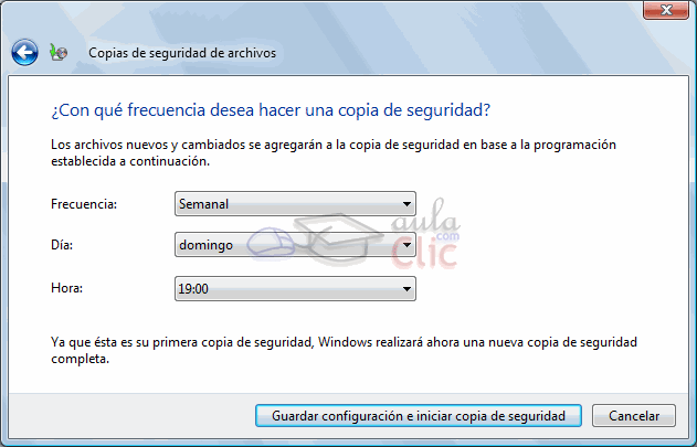 La configuración puede ser diaria + hora, semanal + día de la semana + hora o mensual + día del mes + hora. De todas formas, en la ventana principal podemos desactivar la copia automática si lo preferimos. Si estamos creando una nueva copia, pulsando el botón Guardar configuración e iniciar copia de seguridad Windows iniciará la creación de la copia, que tardará unos minutos, dependiendo de los archivos. Si sólo modificamos una copa existente, pulsamos Aceptar, y la configuración se aplicará a partir de la próxima actualización. |