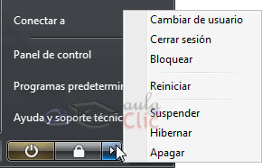 En el menú de inicio encontramos varias opciones sobre la sesión activa, presionando en la flecha que hay junto el botón de bloquear el equipo.