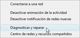 Si a pesar de tener el cable conectado y el módem o router no se conecta, podemos reparar la conexión a través de Windows Vista. Para ello, hacemos clic derecho sobre el icono del área de notificación que representa la conexión Windows buscará el problema. En la mayoría de los casos lo corregirá. Si el problema se debe al hardware, que por ejemplo está deshabilitado, nos ofrecerá las opciones para solucionarlo. Si aún así tenemos problemas, antes de buscar ayuda, es recomedable resetear el módem desenchufándolo de la red eléctrica, volver a conectarlo y esperar unos minutos.