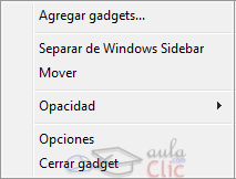 · Por último, Cerrar gadget quita el gadget del Escritorio.