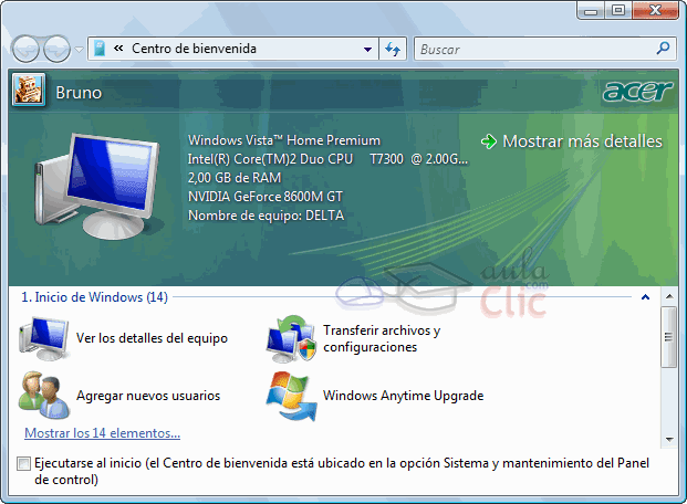 El Centro de bienvenida no es más que una recopilación de las actividades que más nos pueden interesar las primera veces que iniciamos Windows Vista. Desde esta pantalla, podremos acceder directamente a crear nuevos usuarios o transferir archivos con Windows Transfer. |