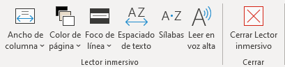 Al pulsar en Lector inmersivo se abre una nueva ficha contextual con las siguientes herramientas: