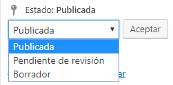 Podemos marcarla como Pendiente de revisión, o como Borrador, por lo que ya no estaría visible en el sitio.