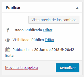 Si ya hemos creado una página y la hemos publicado, tal vez queramos ocultarla de los usuarios para realizar cambios o ajustes. Por tanto, podemos cambiar su Estado: