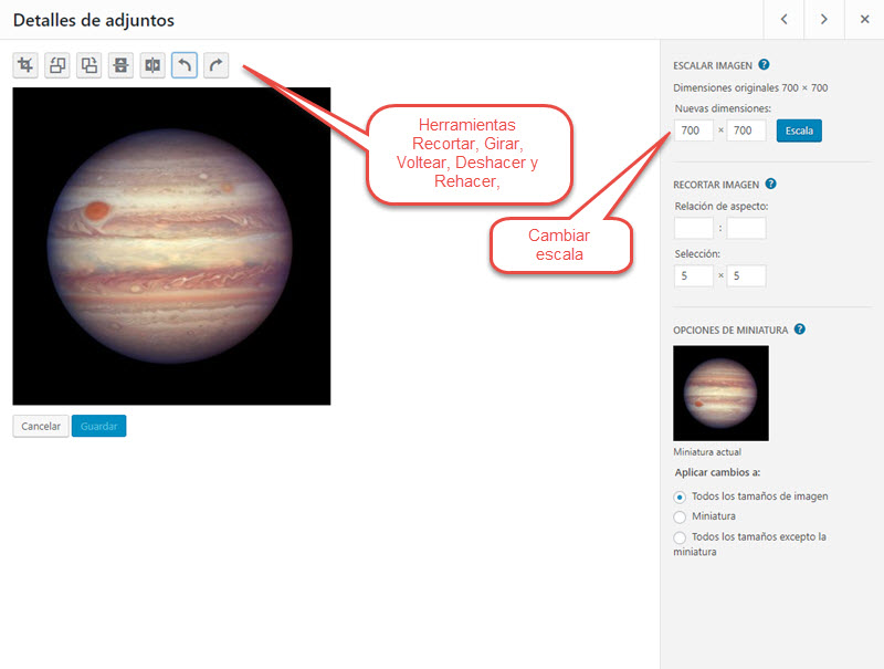 Con el botón Editar imagen tendremos disponibles algunas herramientas básicas de edición: